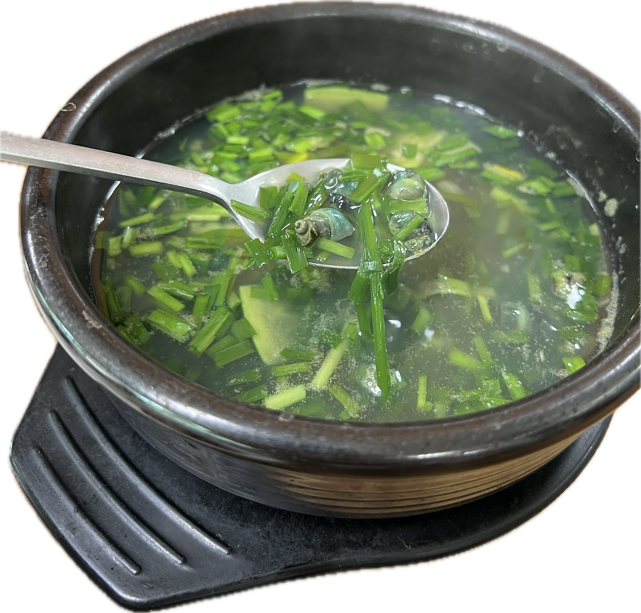 다슬기탕은 슴슴하고 담백한 맛을 가지고 있습니다. 다슬기의 쫄깃한 식감과 잘 어울리는 담백한 국물이 조화를 이뤘습니다.