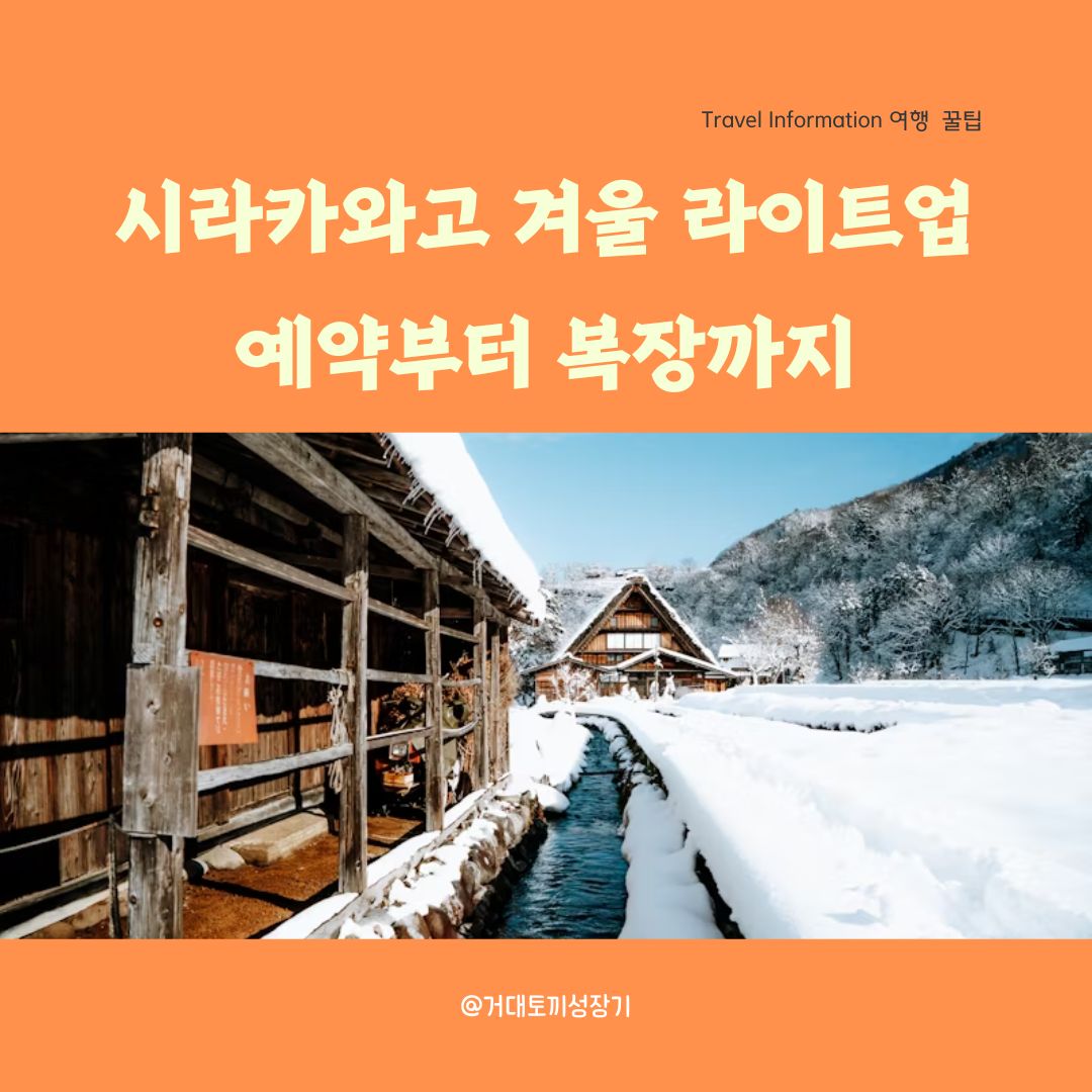 시라카와고 겨울 여행의 핵심은 라이트업 예약과 방한 준비입니다. 예약은 10월 초 오픈 직후 바로 진행하고, 실패하더라도 12월 추가 모집과 캔슬 대기를 놓치지 마세요. 복장은 과할 정도로 준비해도 부족하지 않으며, 특히 발과 손 보온이 가장 중요합니다.