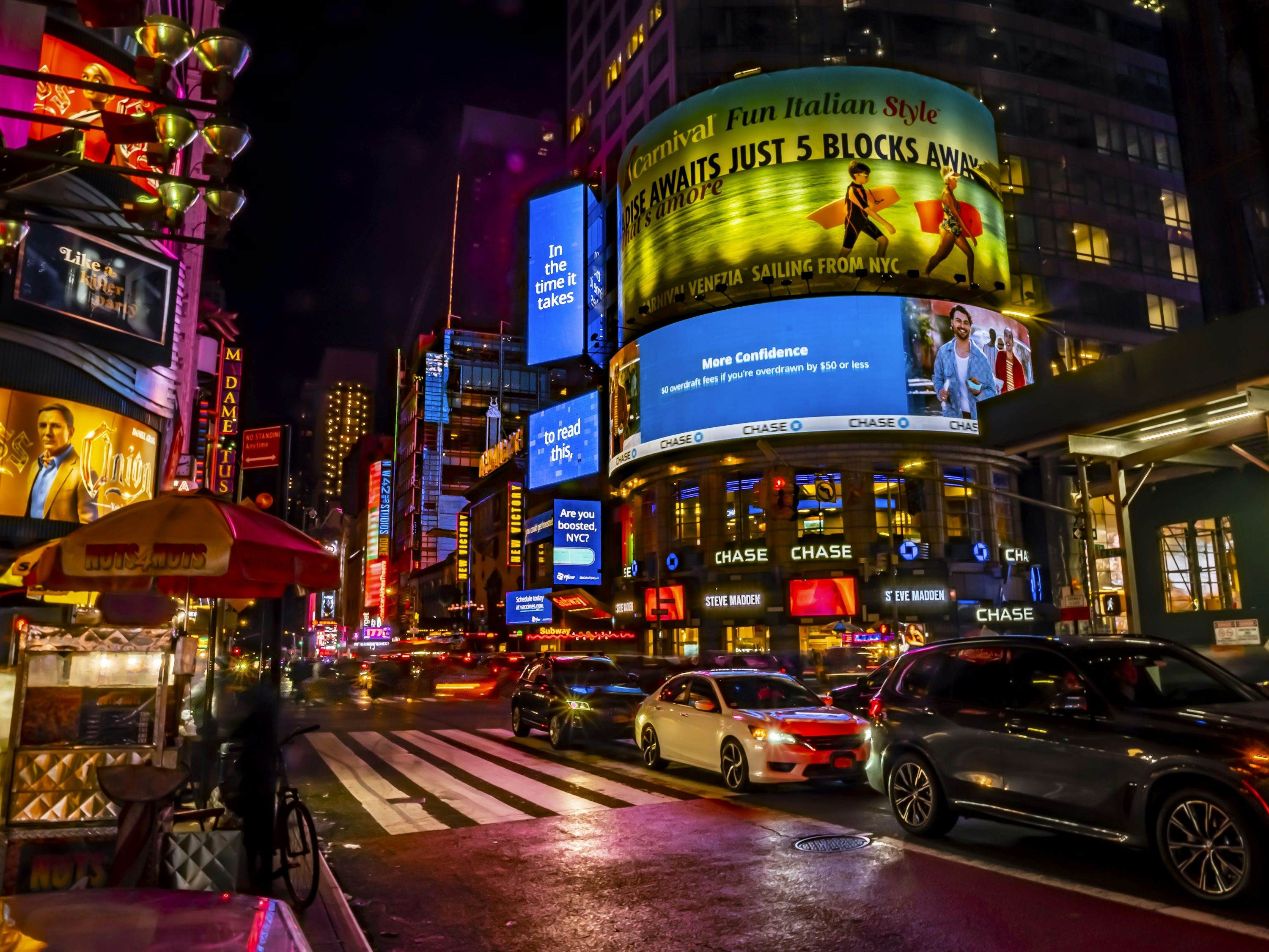 이곳의 가장 큰 특징은 24시간 잠들지 않는 도시의 상징이라는 점입니다. 새벽에도 관광객들로 북적이고, 거리 공연자들의 열정적인 퍼포먼스가 계속되죠. 2025년 현재 약 360개의 디지털 광고판이 설치되어 있으며, 이는 세계에서 가장 비싼 광고 공간으로 알려져 있습니다.