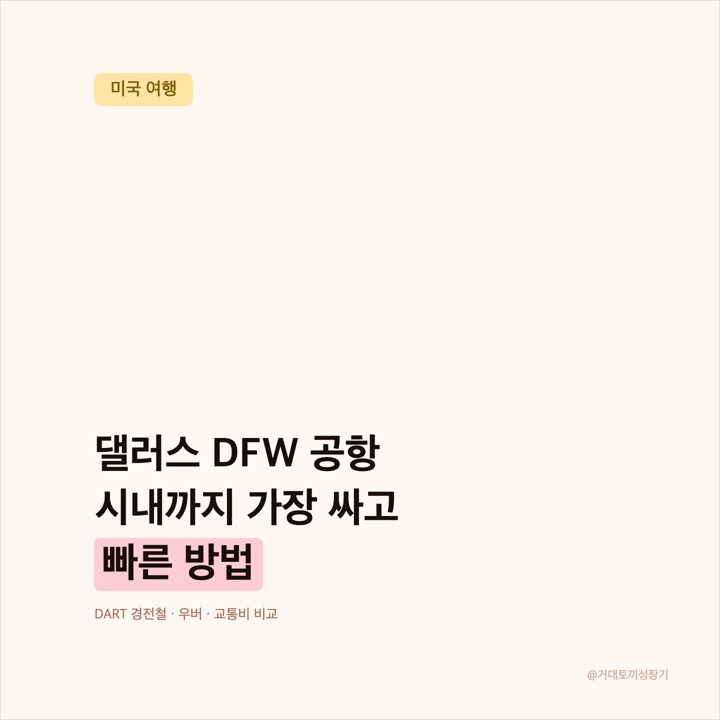 댈러스 여행을 앞두고 가장 먼저 막히는 게 바로 "공항에서 시내까지 어떻게 가지?"인데, 생각보다 옵션이 꽤 다양해서 오히려 뭘 골라야 할지 고민이 될 수 있어요. DFW 국제공항은 시내에서 약 32km나 떨어져 있어서, 잘못 선택하면 시간도 돈도 낭비하게 되거든요. 이 글에서는 DART 경전철, 우버/리프트, 택시, 셔틀까지 상황별 최적 교통편을 싹 다 비교해드릴게요. 가성비부터 편의성까지 꼼꼼하게 따져봤으니 저만 따라오세요~
