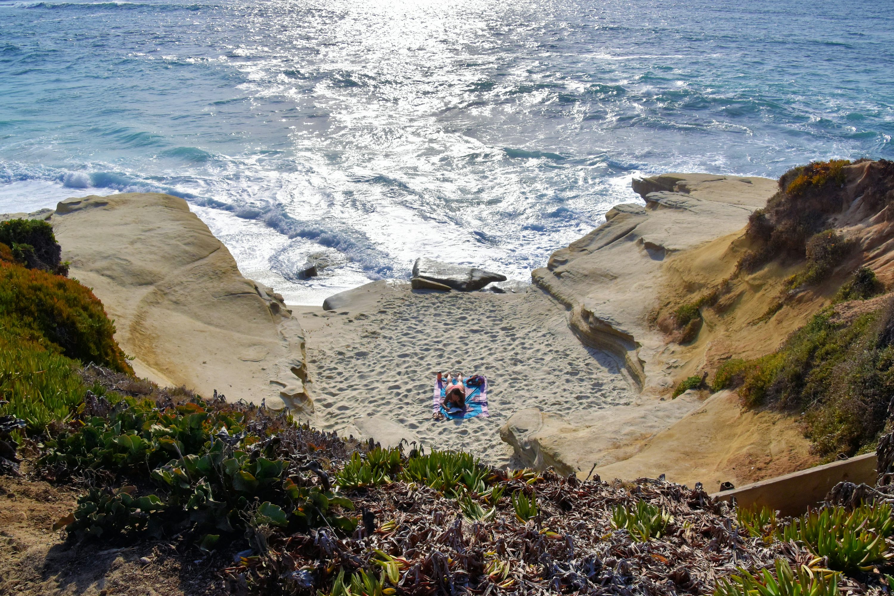 선셋 클리프스는 이름 그대로입니다. 샌디에고에서 가장 아름다운 일몰을 감상할 수 있는 22미터 높이의 사암 절벽이죠. 1.6km에 걸쳐 펼쳐진 극적인 해안 풍경, 숨겨진 코브 해변, 그리고 서핑과