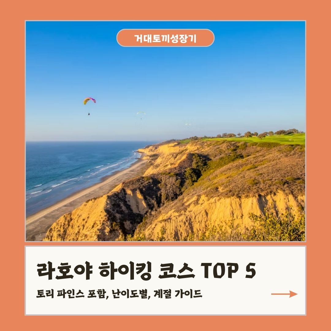 라호야는 해변만 있는 게 아닙니다. 황금빛 절벽과 희귀 소나무, 태평양 파노라마가 어우러진 하이킹 코스가 숨어 있죠. 초보자부터 경험자까지 모두가 즐길 수 있는 5개 코스를 난이도별로 소개하겠습니다. 일출부터 일몰까지, 사계절 모두 아름다운 라호야 트레일을 탐험해보고 싶다면 저만 따라오세요~