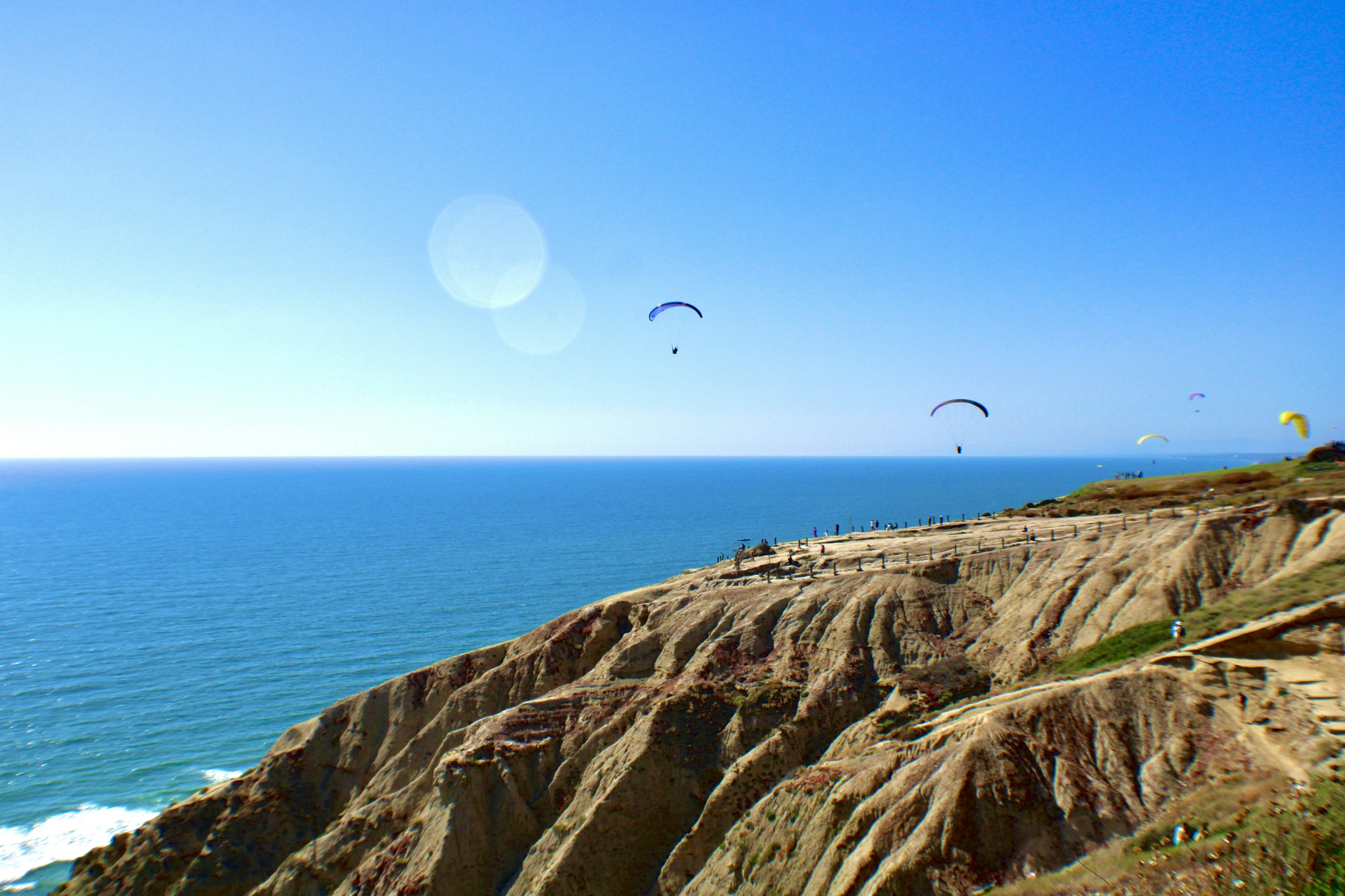 행글라이더 탠덤 비행을 체험할 수 있습니다. 토리 파인스 글라이더포트에서 예약 가능하며, 가격은 $175~275(20~30분). 자격증이나 경험 없이도 강사와 함께 날 수 있어요.