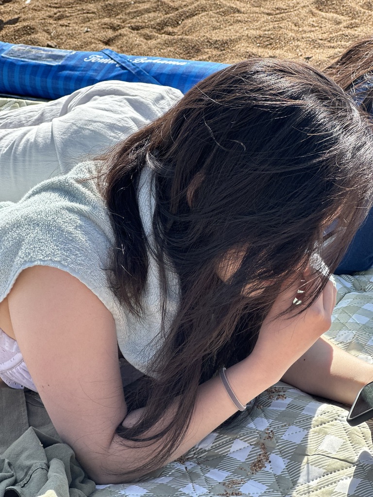 파라솔을 가져온 친구 커플 덕분에 그늘에서 편안하게 쉴 수 있었어요.