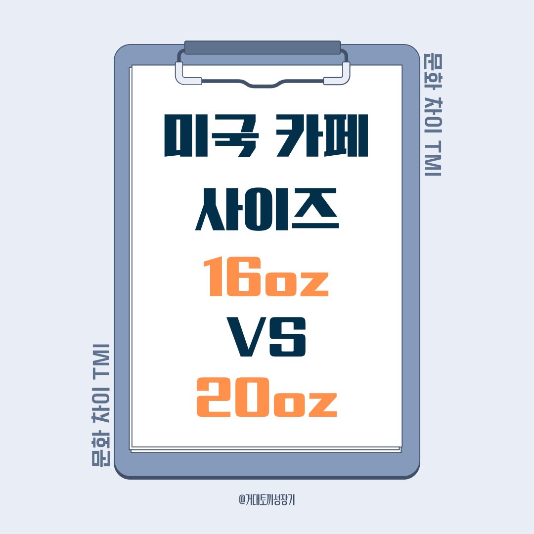 미국 카페의 음료 사이즈는 온스(oz) 단위로 표기됩니다. 16온스는 약 473ml로 한국의 그란데(Grande) 사이즈와 비슷하고, 20온스는 약 591ml로 벤티(Venti) 사이즈에 해당해요. 스타벅스를 기준으로 하면 톨(Tall) 12온스, 그란데(Grande) 16온스, 벤티(Venti) 20온스, 트렌타(Trenta) 30온스 순서입니다.
