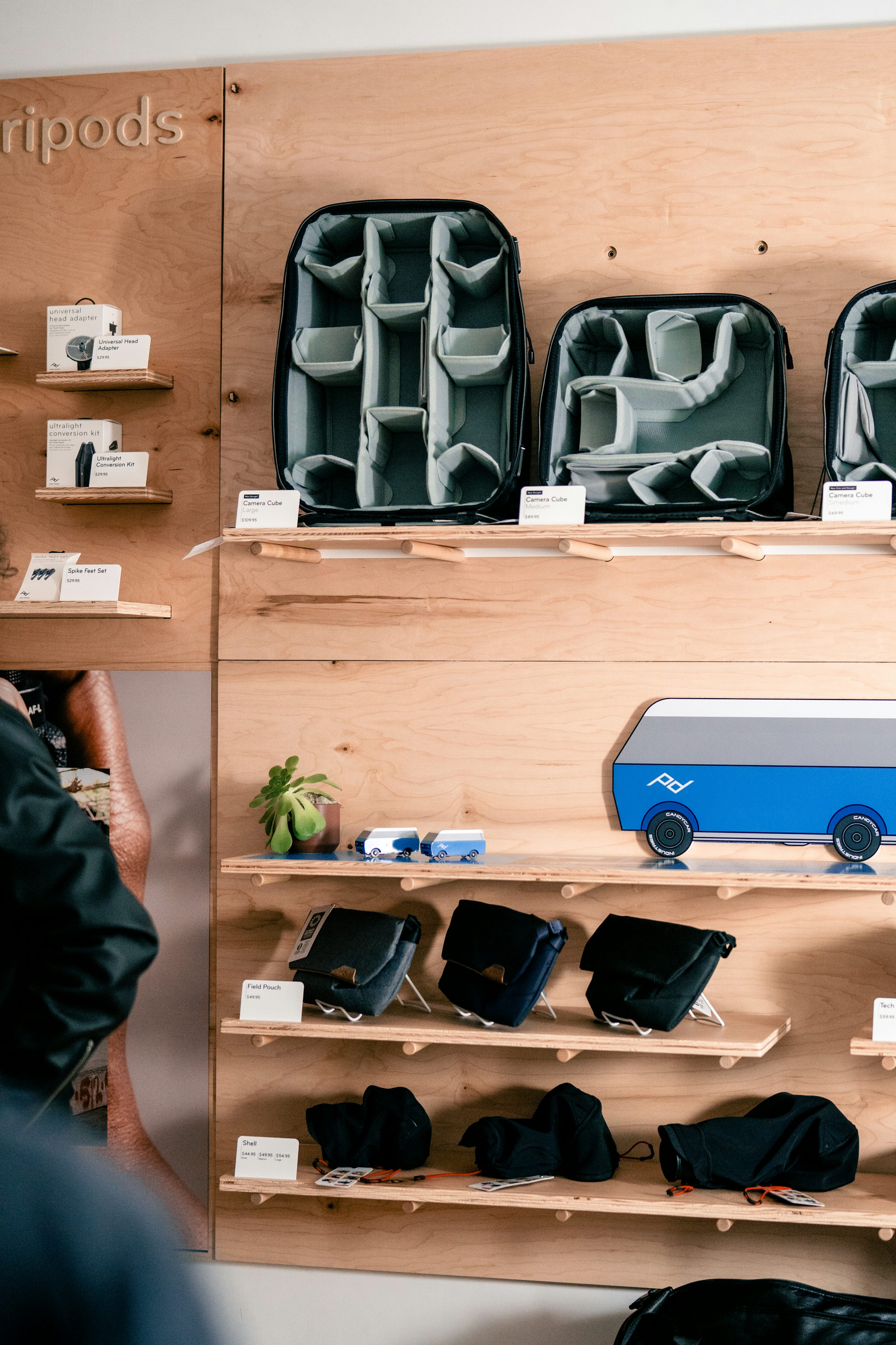 넓은 공간에 다양한 제품들이 카테고리별로 정리되어 있었던 흔적을 볼 수 있었습니다. 카메라 백팩, 슬링백, 트래블 백팩, 트라이포드(삼각대), 그리고 다양한 액세서리까지... 눈이 정말 휘둥그레질 정도였어요.
