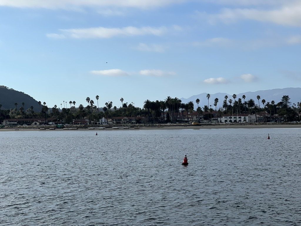 다시 육지로 향하는 길, 문득 바라본 산타바바라 시내의 풍경이 무척 아름다웠어요. 부두에서 바라보는 도시의 모습은 또 다른 매력을 가지고 있더라고요. 반짝이는 바닷물, 멀리 보이는 야자수와 붉은 지붕의 건물들이 어우러져 그림 같은 풍경을 만들어냈습니다.