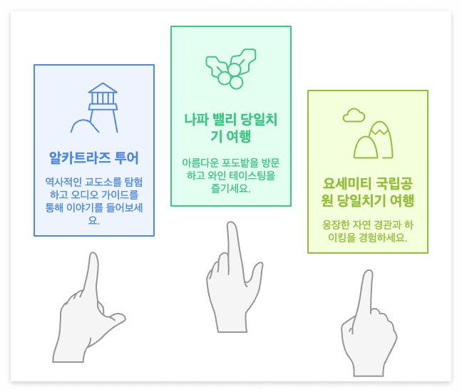 여러분만의 완벽한 샌프란시스코 여행 코스는 계획하셨나요? 위의 추천 코스를 참고하시되, 자신의 관심사에 맞게 조금씩 수정해보세요. 골든게이트 브릿지의 장엄함, 피셔맨스 워프의 활기찬 분위기, 케이블카의 추억... 이 모든 경험이 여러분을 기다리고 있답니다!