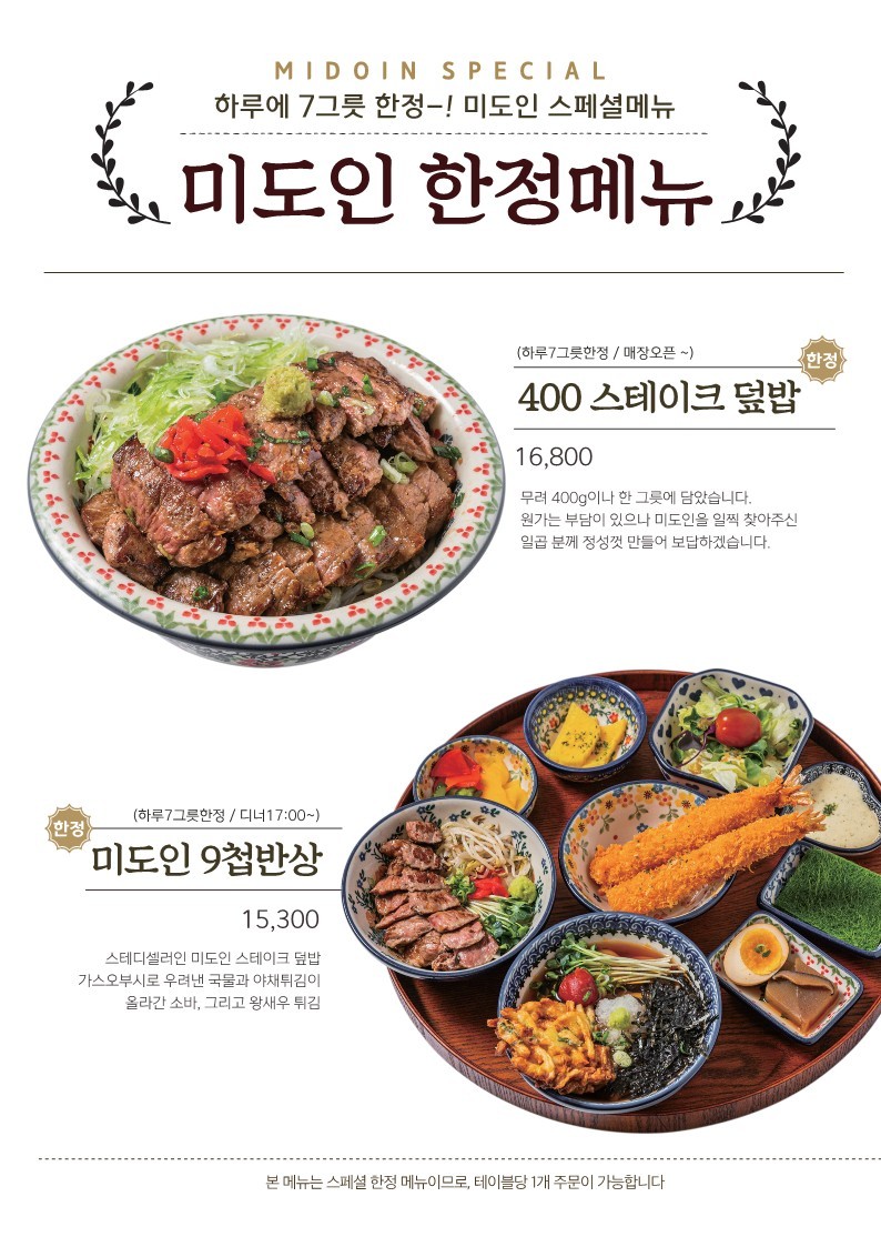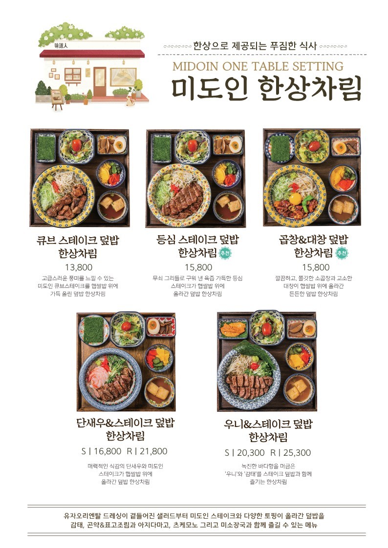 미도인 성수는 성수동에 위치한 맛집으로, 가정식 스테이크와 덮밥 전문점입니다. 고기의 본연의 맛을 살린 다양한 메뉴로 많은 손님들이 다녀가는 곳입니다. 리뷰를 시작하겠습니다. 저만 따라오세요~