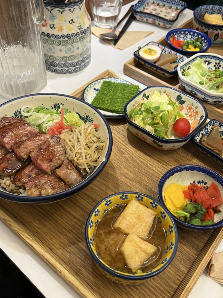 등심 스테이크 덮밥 한상차림 또한 양이 상당히 푸짐했습니다. 스테이크는 두껍지도 얇지도 않게 적당한 두께로 구워져 나오며, 촉촉하고 부드러운 식감이 맛을 더 풍요롭게 만듭니다. 정말 맛있었습니다.