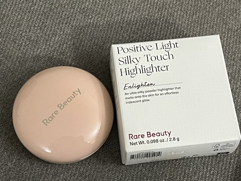 셀레나 고메즈의 브랜드 Rare Beauty의 하이라이터를 드디어 구매했어요! 'Enlighten' 컬러는 은은한 샴페인 빛이라 웜톤, 쿨톤 모두 사용 가능할 듯 해요.