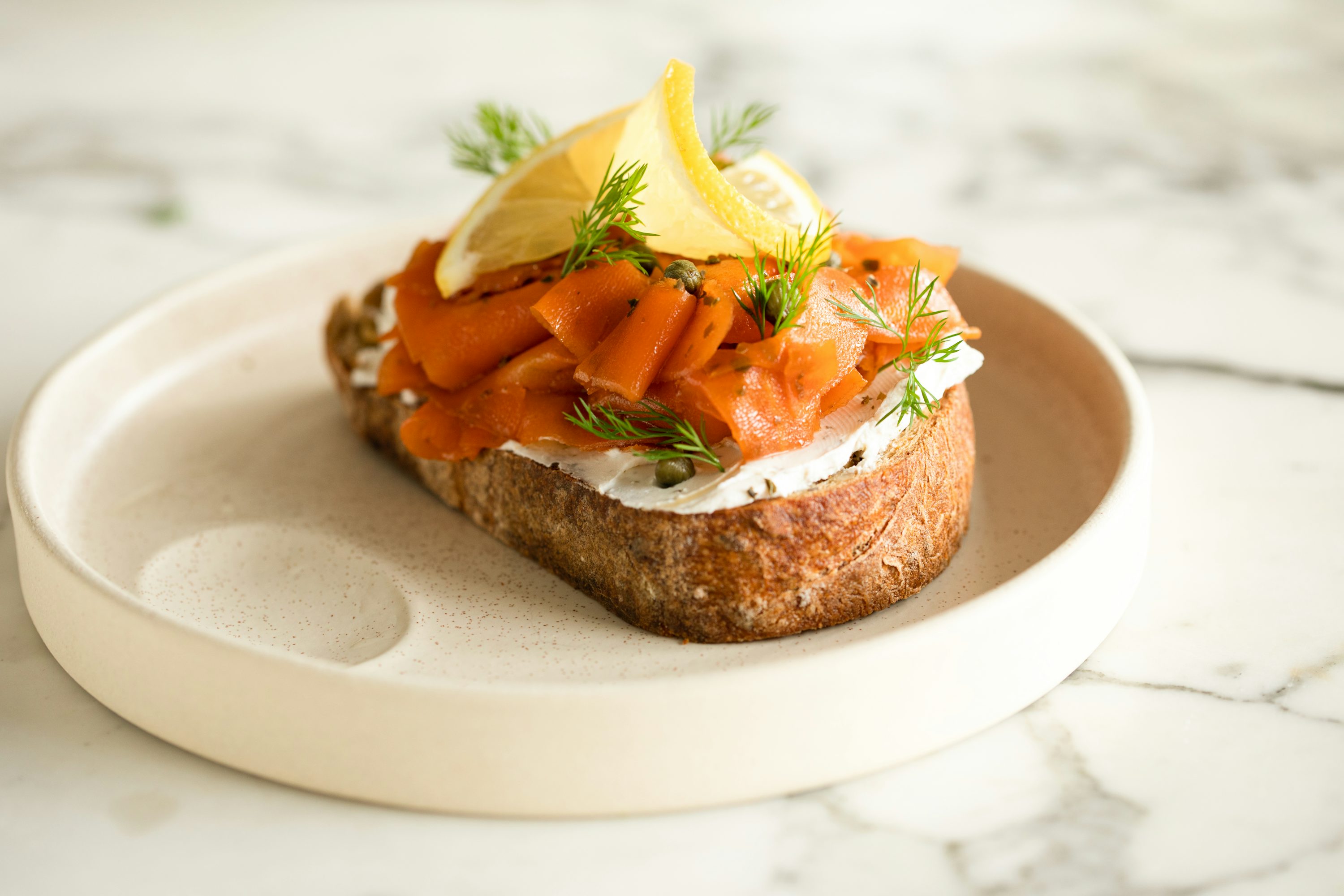 'Smoked Salmon': 일반적인 훈제 연어로, Lox보다 더 포괄적인 표현입니다. "Smoked salmon benedict"(훈제 연어 베네딕트), "Smoked salmon salad"(훈제 연어 샐러드) 같은 메뉴에서 볼 수 있어요.