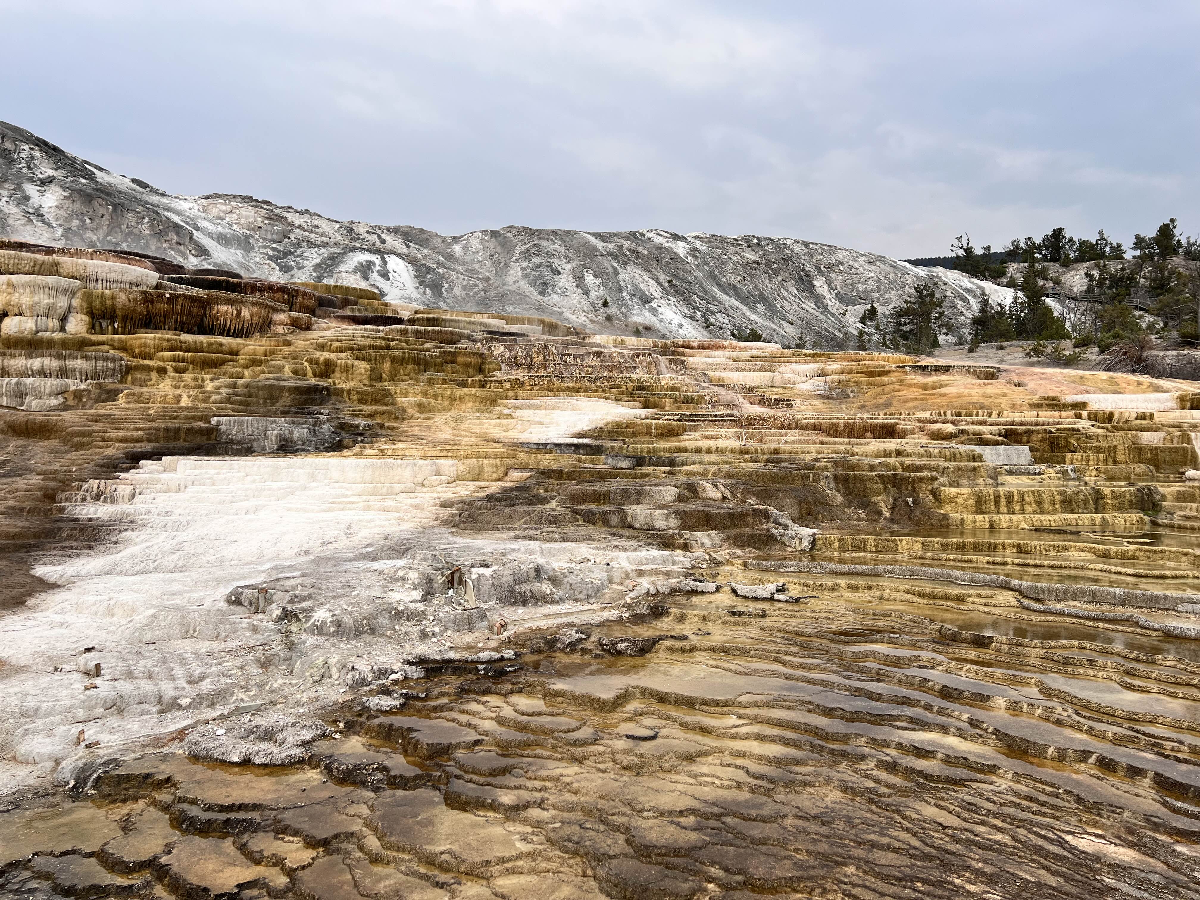Norris Geyser Basin에서 약 30분 거리에 위치한 Mammoth Hot Springs(맘모스 핫 스프링스)Palette Spring(팔레트 스프링)이 있는 곳에 도착했습니다!