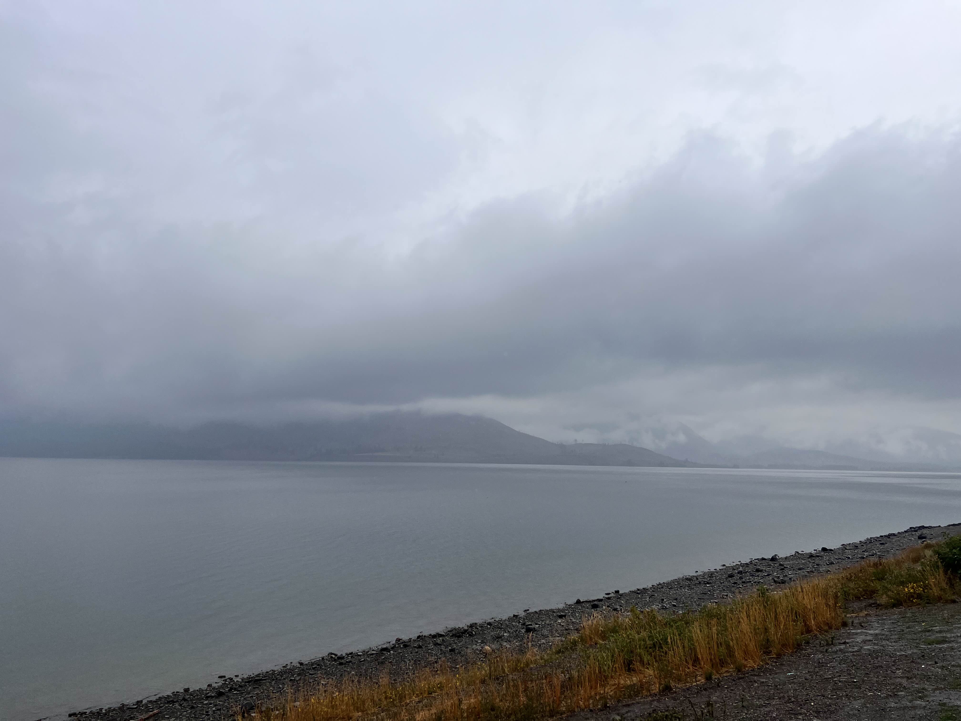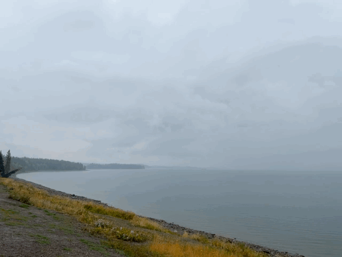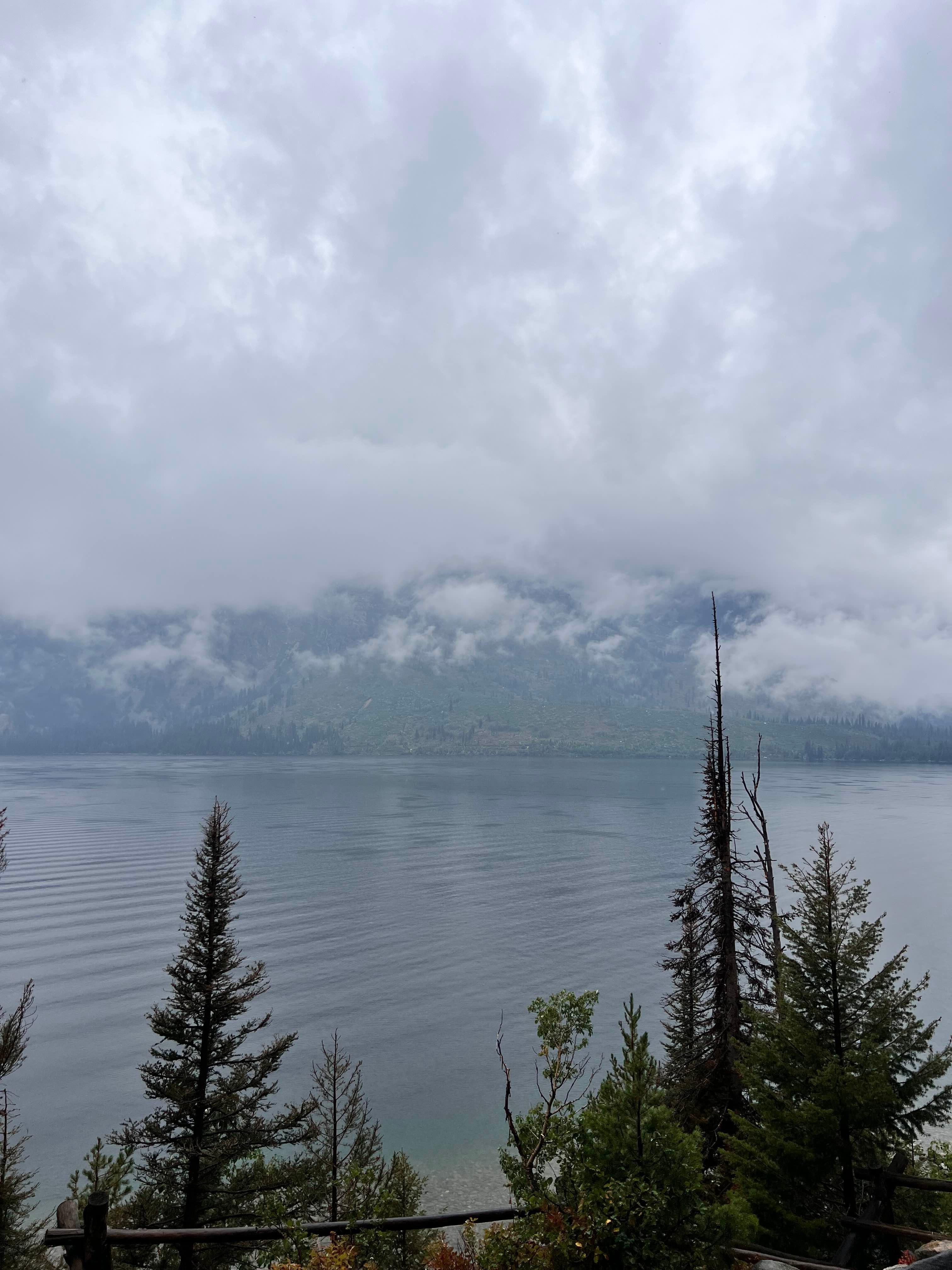 비록 그랜드 티턴의 거대한 산맥은 구름 뒤에 숨어버렸지만, 눈앞에 펼쳐진 잭슨 레이크의 광활한 규모만으로도 충분히 감탄이 나왔답니다.