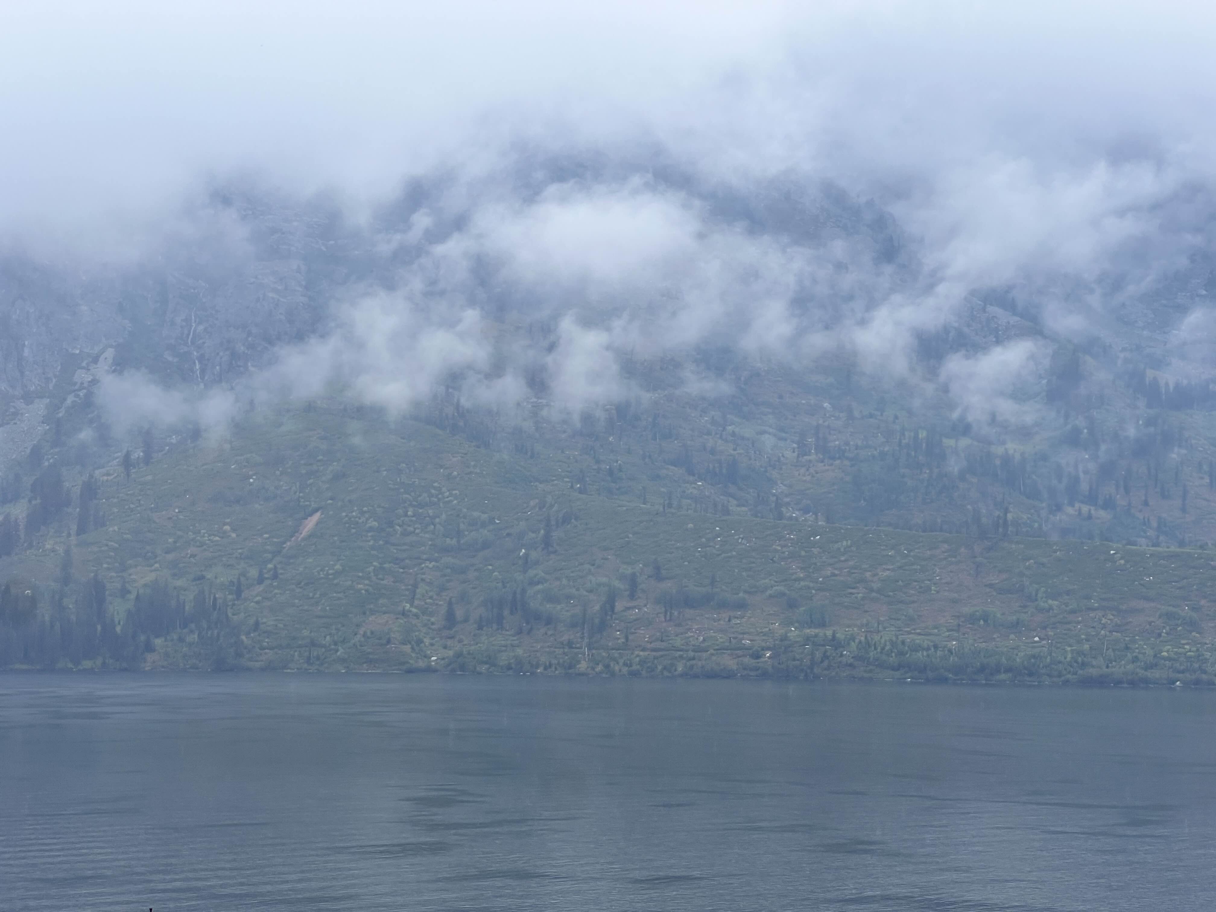 추적추적 내리는 비와 함께 짙은 구름이 산봉우리를 완전히 덮어버려서, 기대했던 그랜드 티턴의 웅장한 모습은 볼 수가 없었어요..