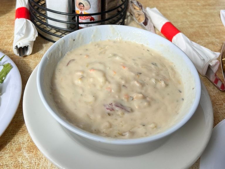 Phil's의 크램차우더는 정말 예술 작품이라고 해도 과언이 아닙니다. 진한 크림 베이스에 큼직큼직한 조개 살이 가득 들어있어서, 한 스푼 뜰 때마다 바다의 짠맛이 입 안에 가득 퍼져요. 너무 걸쭉하지도, 너무 묽지도 않은 완벽한 농도를 자랑합니다.