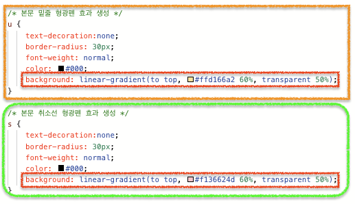 밑줄 형광펜 효과를 적용할 속성 찾는 방법
