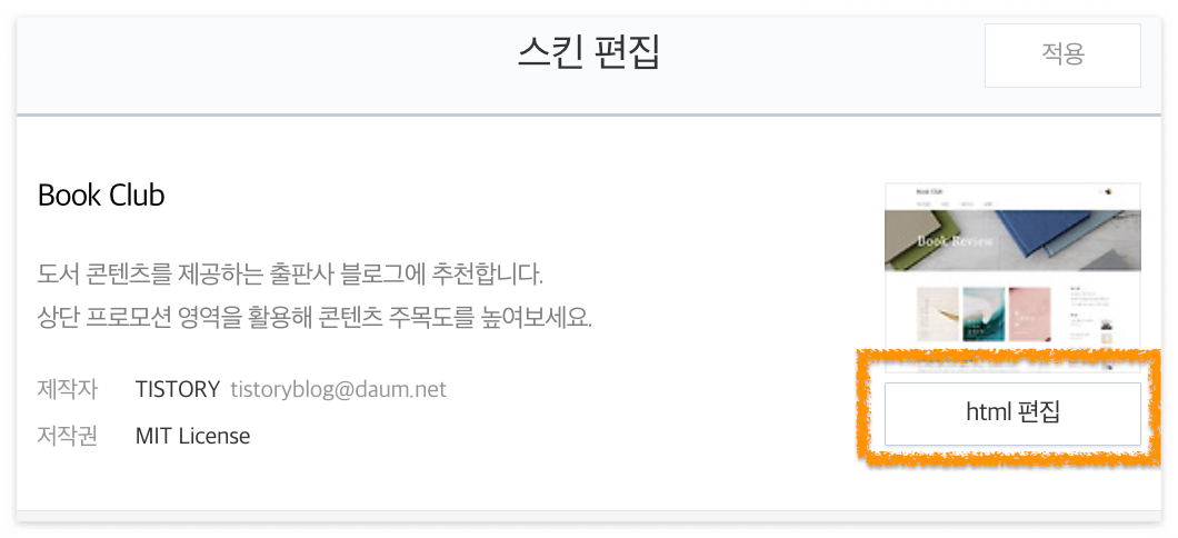 5️⃣ 티스토리 스킨 편집: 블로그 관리 > 꾸미기 > 스킨편집 > html 편집 이동