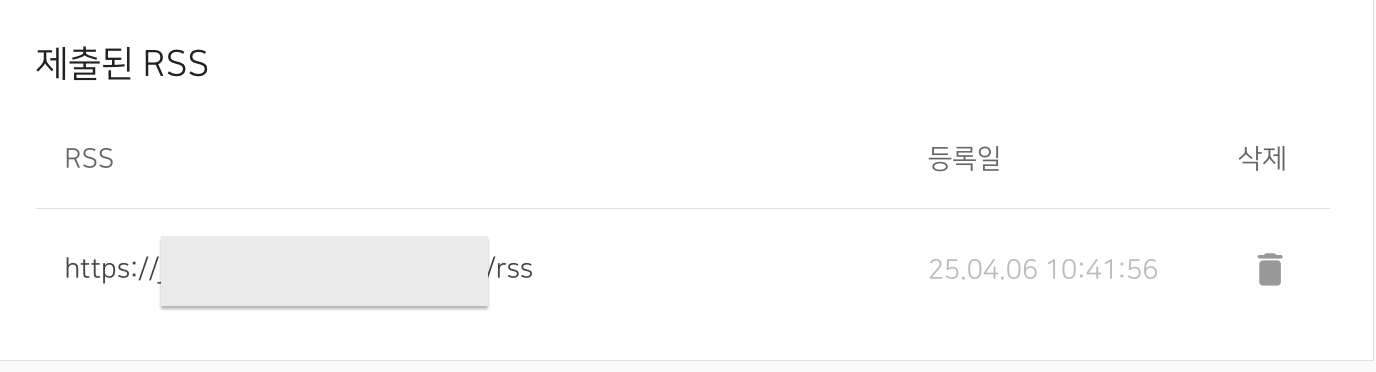 그러면 제출된 RSS에 rss 들어간거 확인할 수 있다.