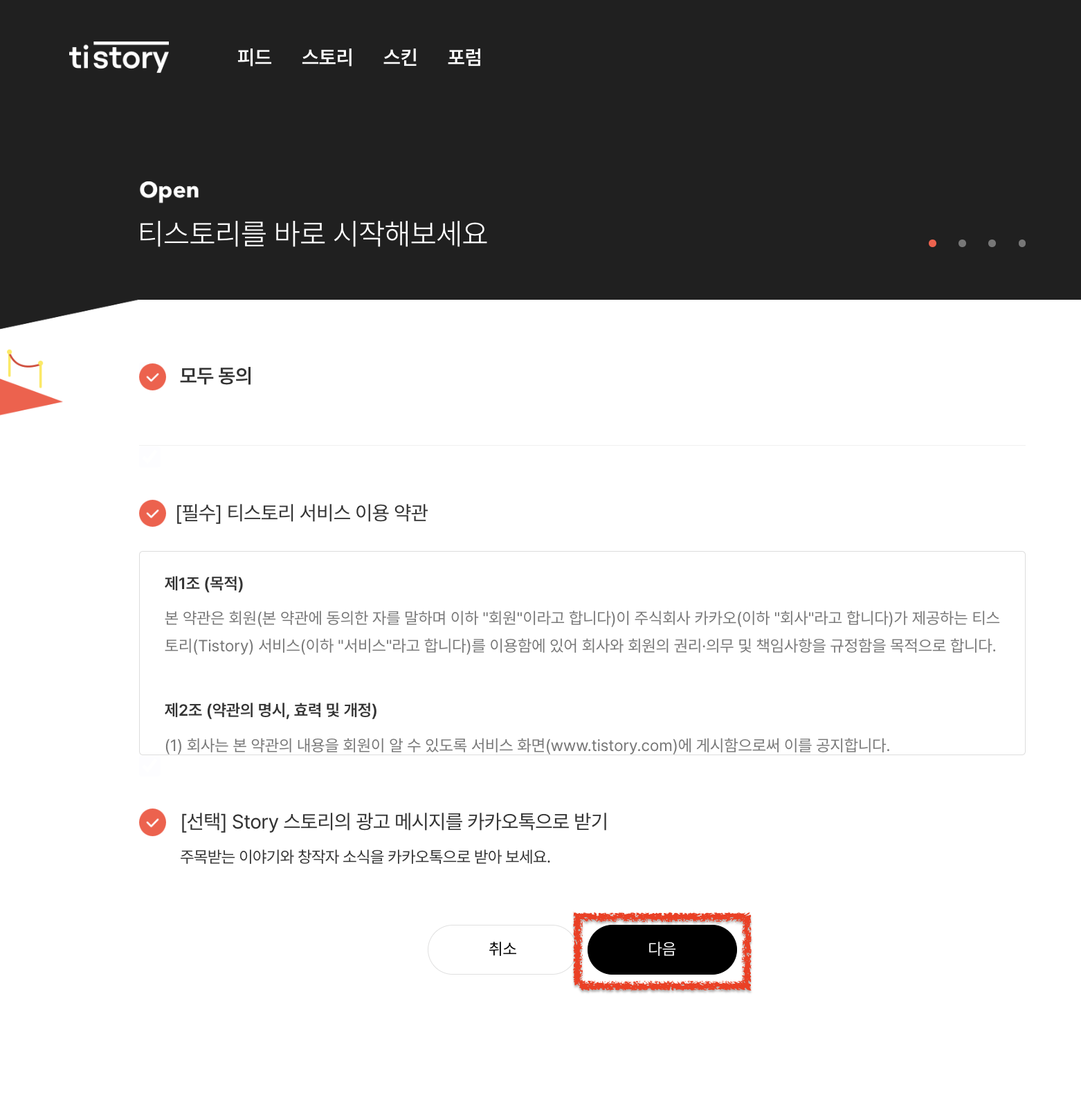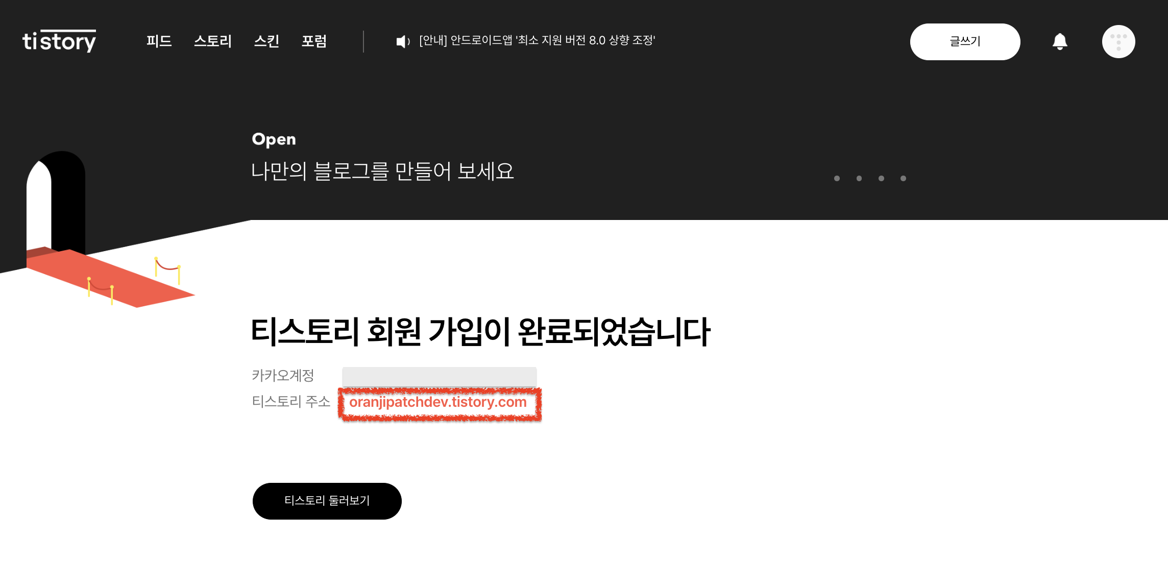 짠~ 이렇게 하면 티스토리 회원 가입이 완료되었습니다. 끄읕~!