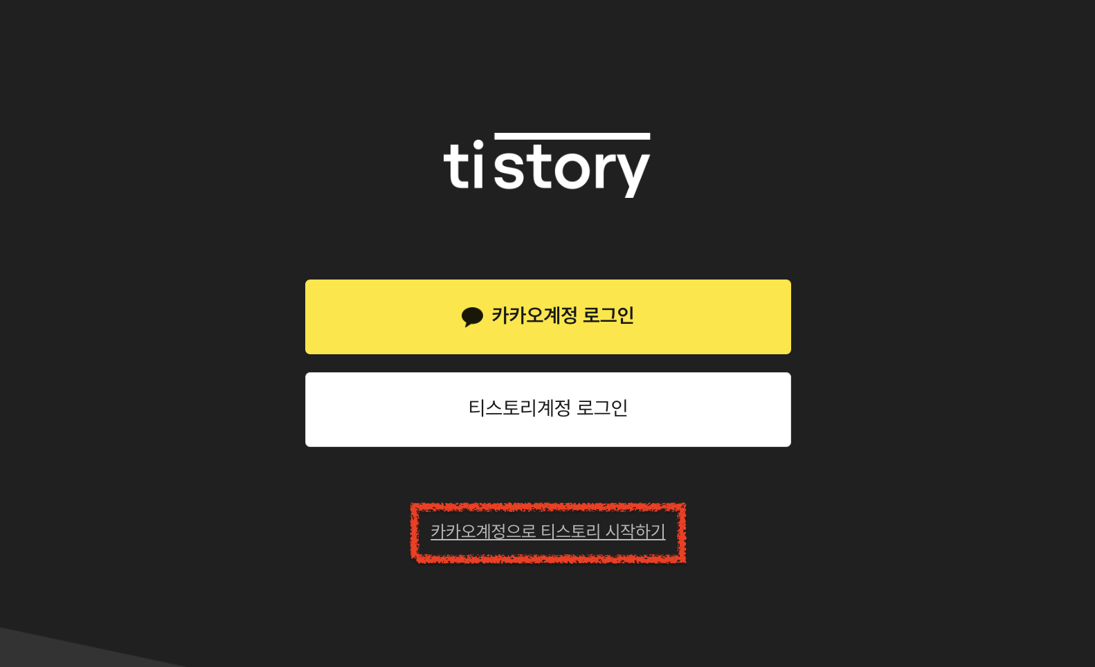 저는 티스토리 계정이나 카카오 계정이 없기 때문에 카카오계정으로 티스토리 시작하기를 선택했습니다.