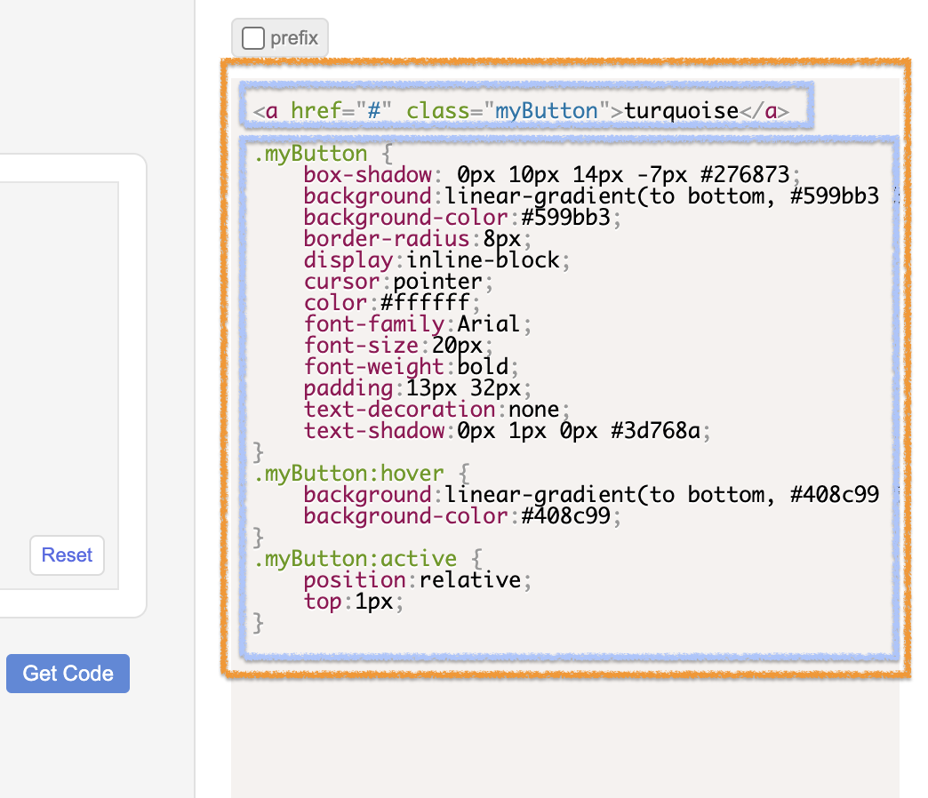 변경을 완료한 후에 가운데에 있는 Get Code를 클릭해서 버튼의 코드 생성