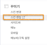 1️⃣ 관리 > 꾸미기 > 스킨 편집 클릭