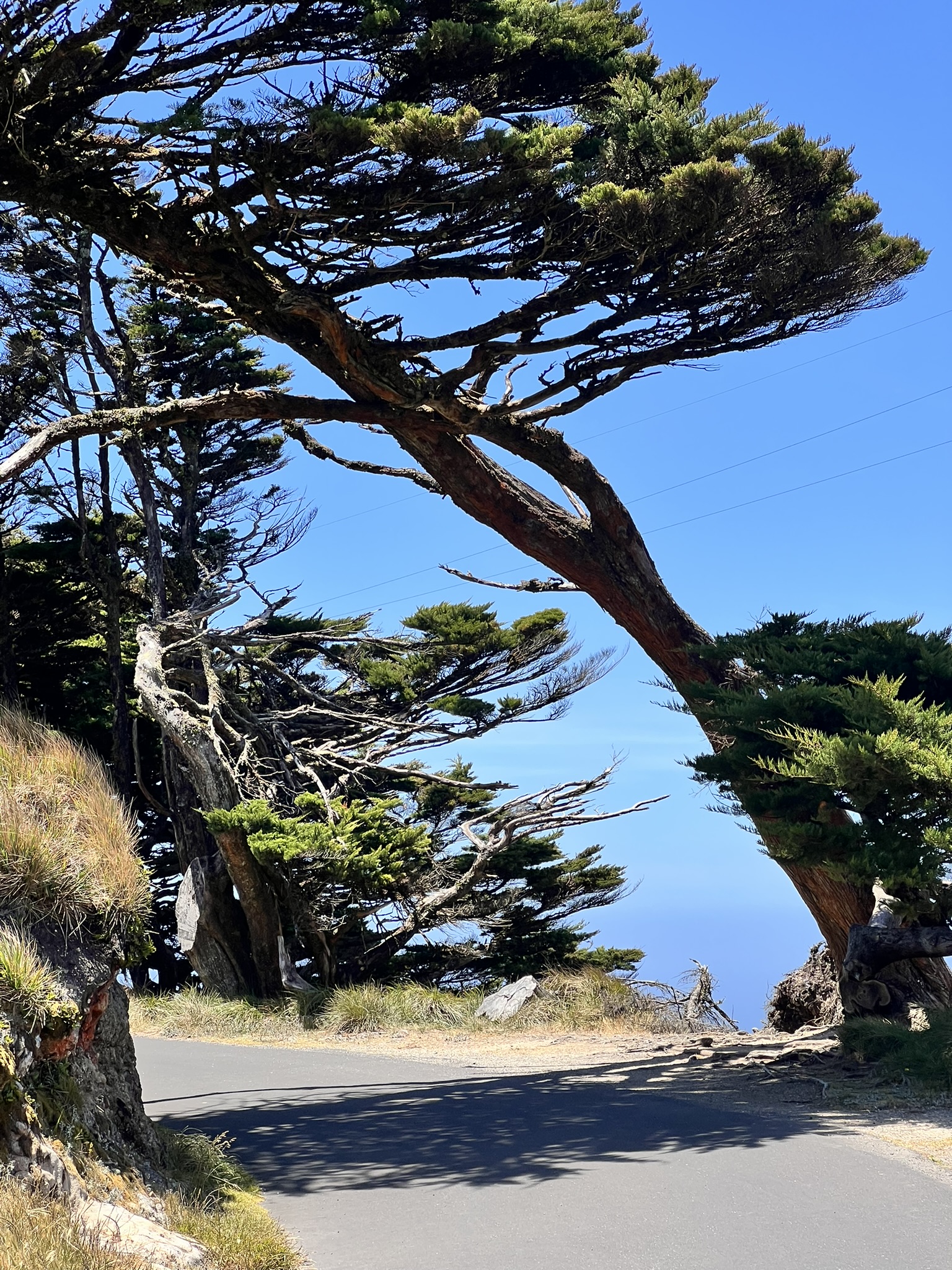 바람이 얼마나 센지 저렇게 나무들이 모두 한쪽으로 누워있더라고요.
