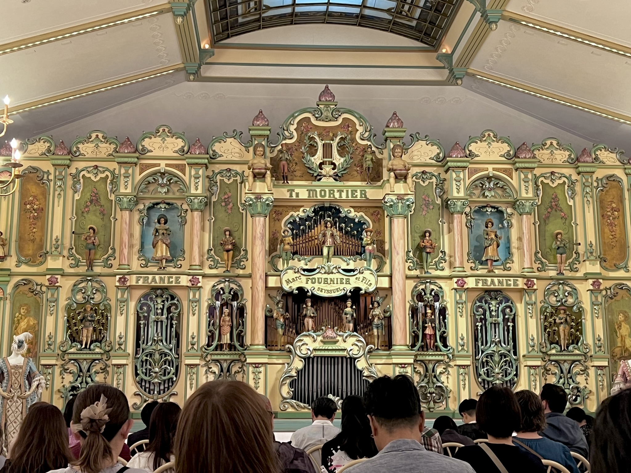 오르골 홀에 들어가면 이렇게 웅장한 대형 오르골이 정면과 양 옆에 배치되어 있는 것을 볼 수 있다. 웅장함이 그냥 미쳤다.. 이 대형 오르골을 마주보며 앉을 수 있는 의자들이 있는데, 엄청 많지는 않아서 서서 감상하는 사람들도 많았다.