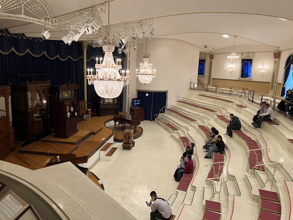 다음 공연은 콘서트홀에서 진행되었다. 이 장소에서는 두 가지의 메인 공연이 있는데, 하나는 정통 클래식 음악 공연(역사적인 오르골 감상)특별한 라이브 공연(오르골과 성악과의 콜라보)가 있다.