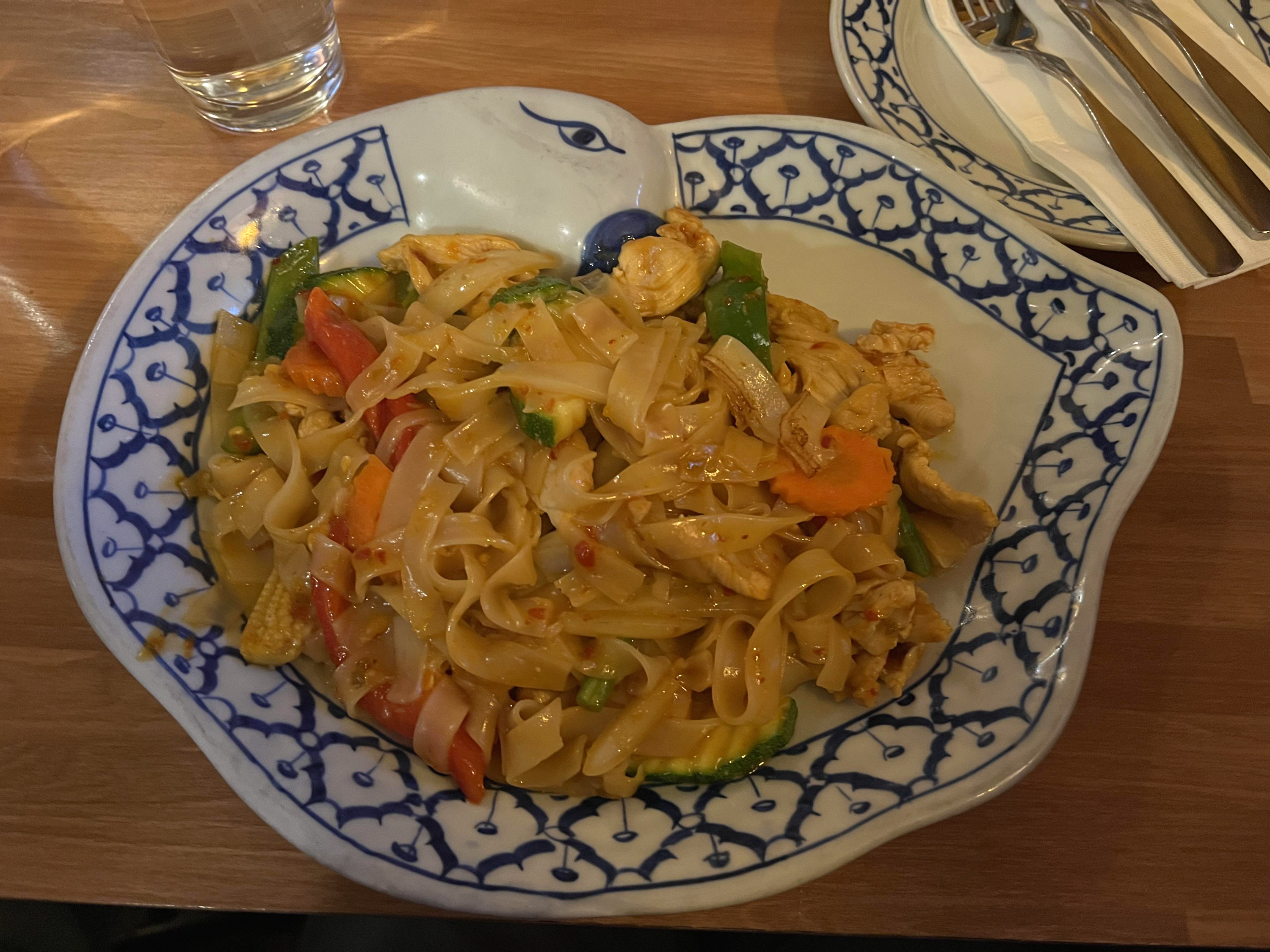 나는 여기서 Drunken Noodle (Pad Khi Mao) 를 주문했다.
